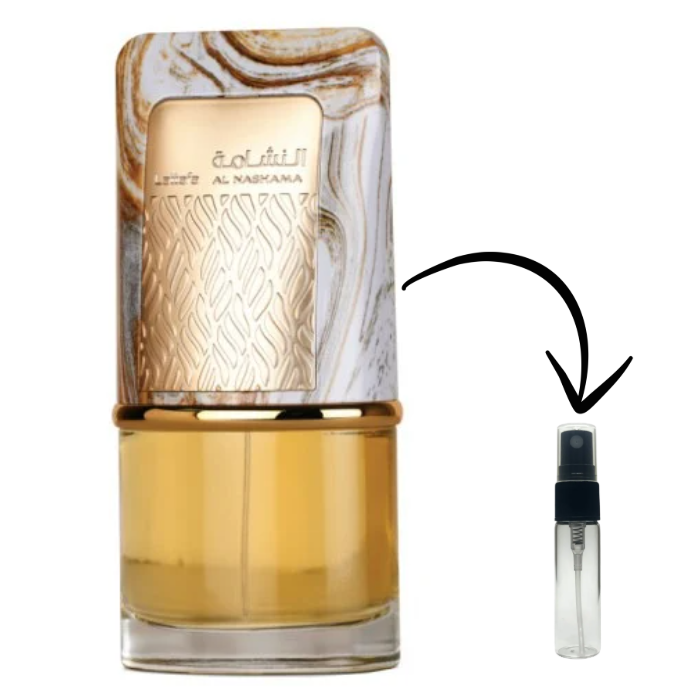 Al Nashama de Lattafa Perfumes é um perfume Compartilhável. Esta é uma nova fragrância. Al Nashama foi lançada em 2024. As notas de topo são: Bergamota, Pimenta Rosa e Sálvia. As notas de coração são: Ameixa, Pimenta Preta e Jasmim. As notas de fundo são: Couro Saffiano, Âmbar, Patchouli e Musgo.