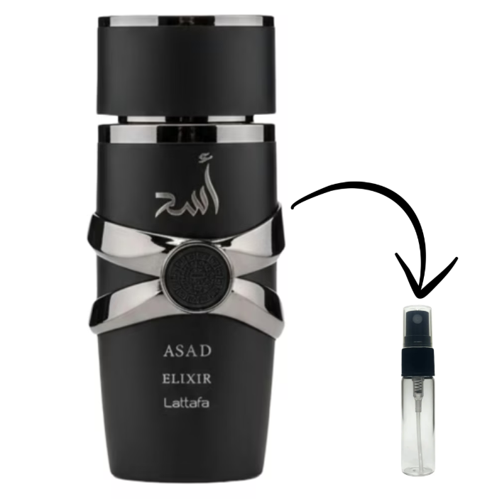 Asad Elixir de Lattafa Perfumes é um perfume Oriental Masculino. Esta é uma nova fragrância. Asad Elixir foi lançada em 2025. As notas de topo são: Pimenta Rosa, Toranja e Açafrão. As notas de coração são: Tabaco, Cedro e Baunilha. As notas de fundo são: Olíbano, Patchouli, Âmbar Claro e Cashmeran.
