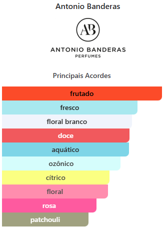 Blue Seduction de Antonio Banderas é um perfume Floral Aquático Feminino. Blue Seduction foi lançado em 2008. Blue Seduction foi criado por Olivier Cresp, Elisabeth Vidal e Rosendo Mateu. As notas de topo são: Melão, Bergamota, Pera e Folha de Violeta. As notas de coração são: Peônia, Jasmim, Lírio-do-Vale, Gardênia e Rosa Búlgara. As notas de fundo são: Framboesa, Patchouli, Almíscar e Benjoim.