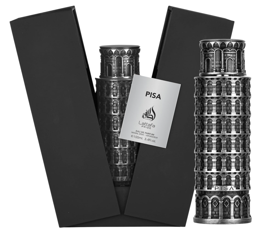 Pisa de Lattafa Perfumes é um perfume Aromático Frutado Masculino. Esta é uma nova fragrância. Pisa foi lançado em 2024. As notas de topo são: Mandarina, Limão e Bergamota. A nota de coração é: Cedro. As notas de fundo são: Sândalo e Âmbar.
