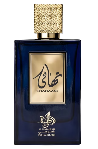 Thahaani de Al Wataniah é um perfume Oriental Especiado Compartilhável. Esta é uma nova fragrância. Thahaani foi lançada em 2022. As notas de topo são: Pêssego, Osmanthus, Peônia, Rosa, Folhas de Violeta e Aldeídos. As notas de coração são: Tuberosa, Flor de Laranjeira, Ameixa, Rosa e Heliotrópio. As notas de fundo são: Almíscar, Âmbar, Sândalo e Musgo de Carvalho.