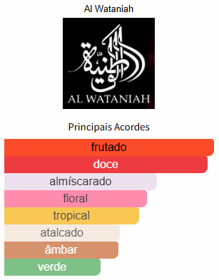 Watani de Al Wataniah é um perfume Aromático Frutado Feminino. Watani foi lançado em 2022. As notas de topo são: Frutas, Frutas Tropicais e Notas Herbais. As notas de coração são: Frutas, Notas Florais e Notas Doces. As notas de fundo são: Almíscar, Notas Doces e Âmbar.